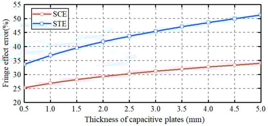 Effect of plate thickness on the capacitance errors caused by capacitive fringe effect.