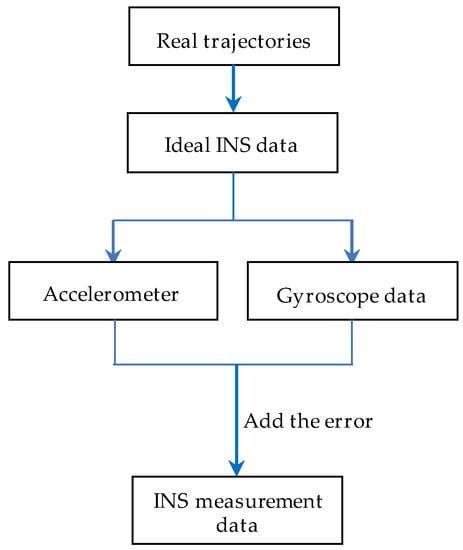 Figure 4 shows the structure diagram of the geodesic-based method, where the transfer function of the execution machine is taken as 1 and K is a natural number. The INS measurement data were obtained following the method shown in Figure 5.
