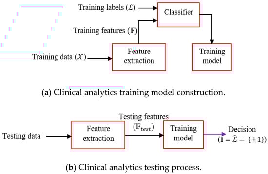 The proposed clinical analytics part attempts to detect anomalous cardiac condition or cardiac ailments by analyzing PCG signals. Automated analysis for cardiac disease identification research has been performed from the last few years. Good numbers of cardiac markers are used to unobtrusively assess the cardiac condition. PCG is one of the fundamental cardiac markers. PCG is a sound signal that captures the heart sound and murmurs. PCG signal carries significant information of cardiac activities. Cardio vascular diseases (CVD) change the state of the heart in terms of contractility and rhythm. PCG signal has different states: S1-Systole-S2-Diastole []. PCG signal from patients suffering from heart diseases carry additional heart sounds or murmurs. Earlier spectral estimation based techniques were used to analyze PCG signals [], where authors have attempted to find additional heart sounds apart from regular S1, Systole, S2 and Diastole. Authors have exploited the spectral characteristics of PCG like strong frequency components, location of S1, S2 and temporal information on the S1–S2 interval are estimated to understand the presence of abnormal heart sound. With the rapid progress of machine learning paradigm, a good amount of research work is witnessed that demonstrates the effectivity of PCG signal for detecting cardiac abnormal subjects. For example, supervised learning or specifically, support vector machine (SVM)-based cardiac abnormality detection from PCG signals is presented in []. Authors in [], extended SVM-based classification with modified cuckoo search and Linear Predictive Coding coefficients as features. Neural network based learner model construction with wavelet coefficients of PCG signals for cardiac condition identification is described in []. Sparse coding with dictionary matrix and corresponding sparse coefficient matrix feature-based SVM learning for PCG signal classification is reported in []. Fisher’s discriminant analysis from 90 different features is investigated in [] for PCG signal analysis. In [], authors attempted to extract 131 temporal, spectral, wavelet and statistical features from PCG signal and applied ensemble classifier to detect cardiac abnormality. We find [] as the most relevant stat-of-the-art solution regarding the clinical analytics investigation. In [], authors have proposed clinical analytics algorithm on PCG signals and experimented with same MIT_Physionet datasets []. Authors have first discovered important features among large pool of initial feature superset using minimum Redundancy Maximum Relevance (mRMR) algorithm []. The top five features from mRMR criteria are selected and fed to different classifiers like bagging- boosting based classifiers, SVM classifier with Radial Basis Function (RBF) kernel. The interesting part of the solution in [] is the majority voting based decision among five classifiers. We have considered this algorithm as the state-of-the-art for comparative study of the clinical analytics outcome primarily due to its focus on PCG signals and experimentations on same datasets.