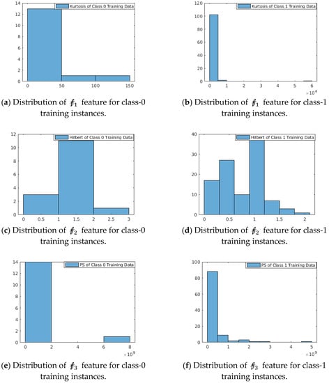 - For In the feature function Max (mean(power spectrum(data)), class-0 instances are concentrated in (0, ), whereas class-1 instances are distributed over the range (0, ).