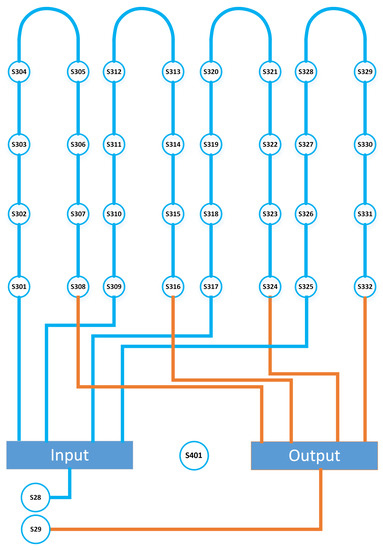 Geothermal exchanger. The horizontal exchanger consists of five different circuits. The ground temperature along the exchanger is monitored using sensors distributed in four different loops. A scheme of the sensors located along the exchanger can be seen in Figure 2. Sensors S28 and S29 measure the energy absorbed from the ground and S401 measures the ground temperature. The rest of the sensors monitor the exchanger temperature in different points.