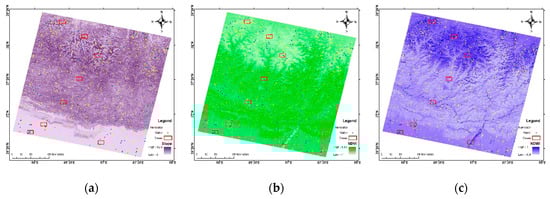Secondary bands (a) slope; (b) NDVI and (c) NDWI.