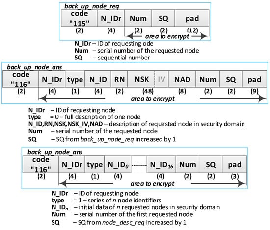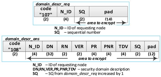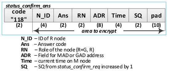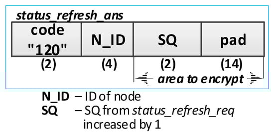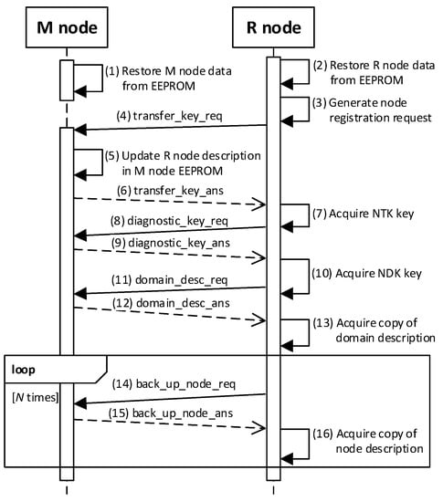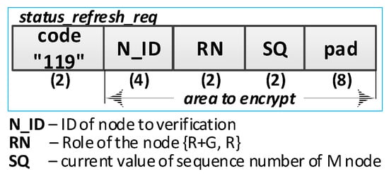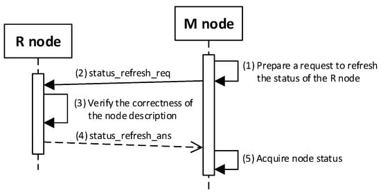 The procedure for updating the domain node status was initiated after powering on the M node. Table 2 presents the transmission requirements for the refresh status procedure for one registered node in the domain.