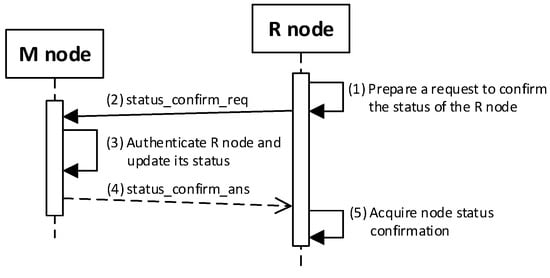 The procedure to confirm the status of node R must be done once after turning on the power supply of this node. Table 3 presents the transmission requirements for the procedure of confirming the status of the R node.