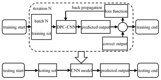 In order to reduce the amount of calculation and improve the training efficiency, the experiment uses a batch training method. A batch of data in the training set is randomly selected as the training data of the network in each iteration cycle. It can effectively improve the training speed, reduce the calculation amount of each iteration, find the optimal gradient descent direction more quickly to avoid the problem of overfitting and gradient disappearing. The train and test flow chart is shown in Figure 16: