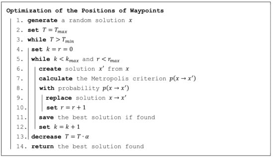 Simulated annealing for the problem of optimizing waypoint positions.