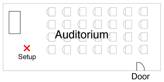 Our first scenario is a silent auditorium illustrated in Figure 2. It is an environment with low-level noise, consequently presenting a high-quality audio signal.