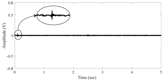 We labeled this environment as the Indoor Scenario. It is an auditorium acoustically isolated without external audio noise. This environment represents a place for conferences, presentations, with a low level of noise. The measured signal is shown in Figure 3 when there is no audio source. The signal does not present impulsiveness.