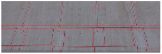 The expansion joint is a kind of artificial cutting crack. It is designed to safely absorb the temperature-induced expansion and contraction of concrete materials, absorb vibration, or allow movement due to ground settlement or earthquakes. Expansion joints have strict construction specifications, and their design and construction refer to the “Technical Specification for Inspection of Concrete Defects by Ultrasonic Method” which stipulates that a vertical and horizontal expansion joint should be set every 3–5 m, and the width should be 2–3 cm. The expansion joints are included in the red rectangular frame in Figure 9. In summary, the expansion joints have a relatively uniform width and grayscale. So, for every expansion joint in an image, the degree affected by the adjacency effect is similar. Therefore, it is chosen as the research data.
