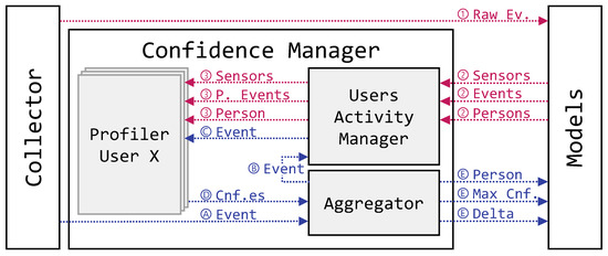 - inside the confidence manager, a submodule called “user activity manager” takes care of instantiating the profilers (one for each registered user) with the labeled events plus the registered sensors and initiates the training phase according to Algorithm 1.
