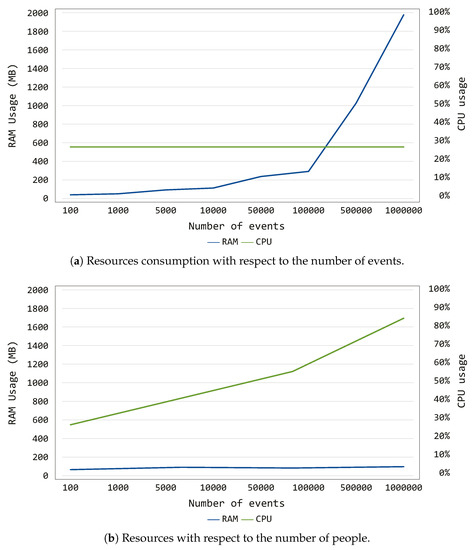 The conducted experiments on the resources consumption of the Continuous Authentication framework showed that the proposed system presents a RAM-demanding trend when the number of considered events become huge, while it shows a CPU-demanding tendency when increasing the number of users. Nevertheless, the framework performs well in normal conditions: it utilizes less than 400 MB to analyze 100,000 events, and it uses less than 60% to authenticate 100 people. Such results demonstrate its applicability to smart environments, such as smart home or smart office.