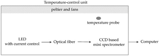 The method to compensate for the non-linearity effects of CCD spectrometers can be performed using a very simple setup in a temperature-controlled environment. Minimum requirements are a stable temperature (±1 °C) and a stable light source (e.g., a white LED with a highly stable constant current source). Furthermore, the integration times programmed into the spectrometer should be linear and stable with time (see Section 2.2.6).