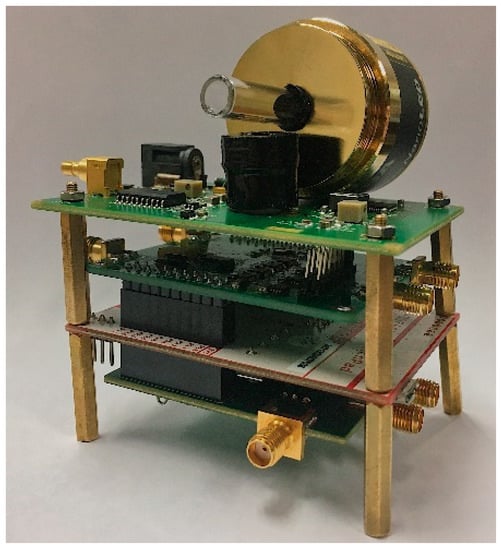 The implementation of a complete portable TCSPC system for DNA detection requires various optical and electronic components. Each component has been carefully selected to meet the requirements of compactness, excitation rejection, and accuracy. The system has dimensions of 7.3 cm (L) × 6.1 cm (W) × 9.2 cm (H), as shown in Figure 4.