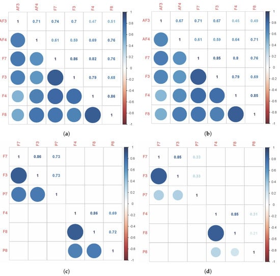 As previously shown, location and nomenclature of the 14 EEG electrodes is chosen as standardized by the American Electroencephalographic Society (AES) [], are depicted in Figure 3 and marked in red [AF3, F7, F3, FC5, T7, P7, O1, O2, P8, T8, FC6, F4, F8, AF4].