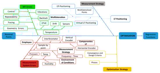 The error of a point is influenced by different uncertainty sources, which also affect the verification result. Uncertainty sources, which affect the volumetric verification based on LT, have been divided into the following (Figure 3):