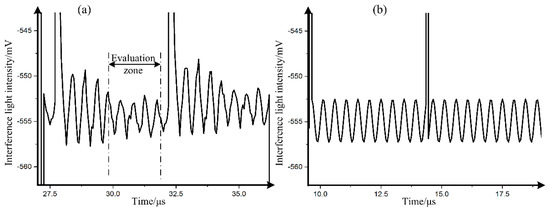 (a) Interference light intensity signal obtained by the A/D convertor; (b) interference light intensity signal by simulation with the measurement results.