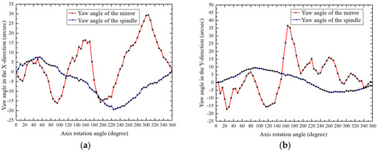The motion tilt error of the mirror and the shaft: (a) X-direction; (b) Y-direction.