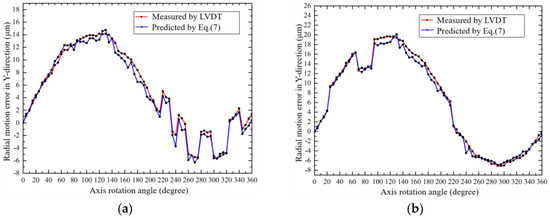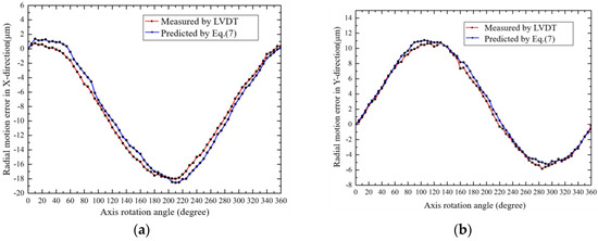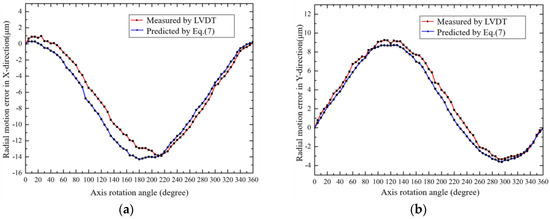 The radial error motion of the axis (h = 60 mm): (a) X-direction; (b) Y-direction.