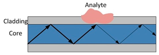 Since this type of sensor is sensitive to any analytes that can cause a RI change in the cladding, a special protective membrane may be necessary to exclude any interfering chemicals from interacting with the cladding.