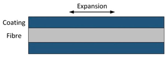 Chemical information can manifest itself as a strain on the fibre imparted by transducer materials that swell in response to a substance. The chemical transducer materials often take the form of a simple fibre coating, as shown in Figure 13. Polyimide and palladium (Pd) are widely used coating materials for humidity and hydrogen sensing, respectively [72,73]. The generated strain is usually acquired by measuring the wavelength shift of an FBG for discrete sensing [74].