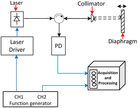 A reflected interferometric signal is processed through a heterodyne detection [25,26] based on a phase-generated carrier (PGC) where modulation of the optical frequency of the laser forces a phase modulation in the unbalanced interferometer: