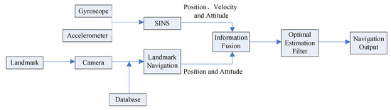 Recently, as a new navigation technology, landmark navigation has received wide attention globally. As can be seen, landmark navigation is technically different from CNS. It is based on the visualization of the landmarks, which can solve the drawbacks of star sensors and navigate the aircraft by using the geographical features of the planet’s surface [8,9]. To compensate the application limitation, this paper combines SINS with landmark navigation to construct a pattern with high precision to meet navigation requirements.