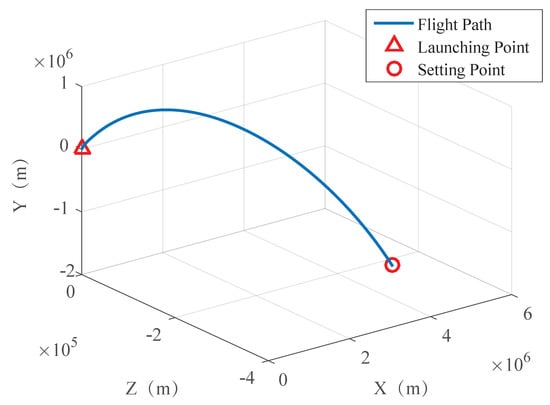 ① Initial position errors of the three directions wer all 0 m. ② The initial speed errors were 0 m/s. ③ The initial attitude angle error was 0. ④ The gyro random constant drift was . ⑤ The gyroscope random noise drift satisfied a normal distribution with a mean of 0 and a standard deviation of 0.5. ⑥ The accelerometer random constant bias was , where g is the Earth gravity constant. ⑦ The accelerometer random noise offset satisfied a normal distribution with a mean of 0 and a standard deviation of . ⑧ The standard deviation of the landmark navigation output position error was 50 m. ⑨ The standard deviation of the landmark navigation output attitude error was 3.