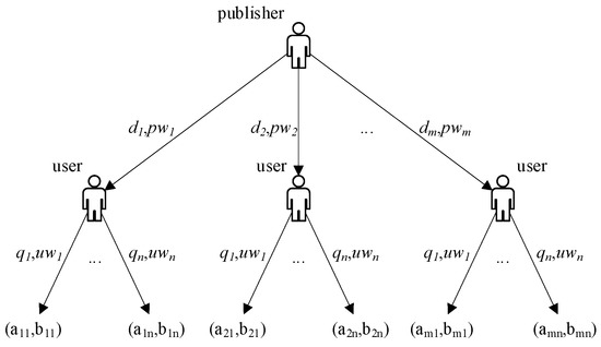 - W = (uw, pw) is the strategy space of both sides, where uw = {uw1, uw2, …, uwn} denotes users’ data quality optional strategy sets, and pw = {pw1, pw2, …, pwn} denotes publishers’ task-motivated optional strategy sets.