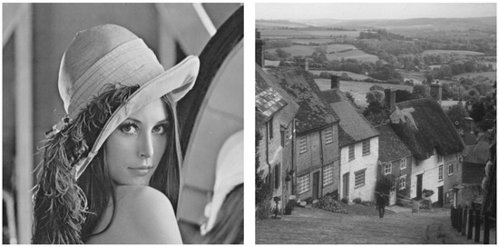 We considered two different gray-scale (only gray-scale images are considered to simplify the assessment of the system, avoiding the complex evaluation of the three components present in color images) standard test images as shown in Figure 4: “Lenna” and “Gold Hill”. The “Lenna” image comprises two clearly differentiated parts, a woman face with a large level of detail and a blurred background. The “Gold Hill” image is a landscape picture with many focused objects with a lot of detail. The assessment of the system is done separately for each image.