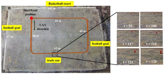 Experimental setup: the outdoor environment, and some sample captured images. UAV: unmanned aerial vehicle.