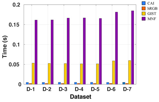 Average time (seconds) to generate the visual features using different descriptors on all datasets.
