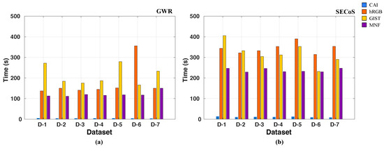Average CPU time (seconds) to generate a specific novelty detector for each dataset by using different feature extraction techniques: (a) GWR detectors; (b) SECoS detectors.