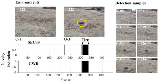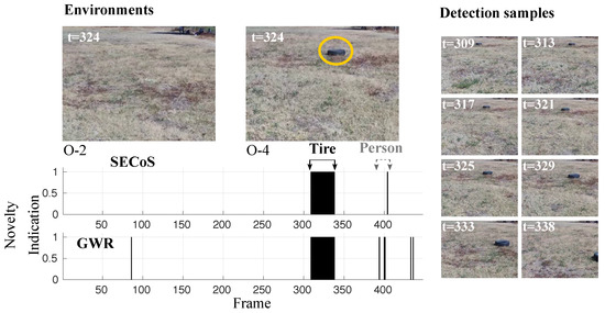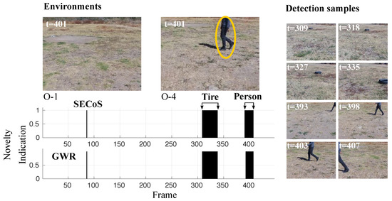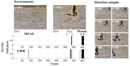 Visual results in novelty detection on dataset D-3 (the tire as the novel object, and the person as the normal object).