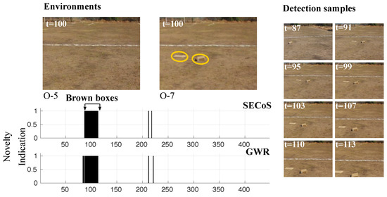 Visual results in novelty detection on dataset D-7 (the brown boxes as the novel objects).