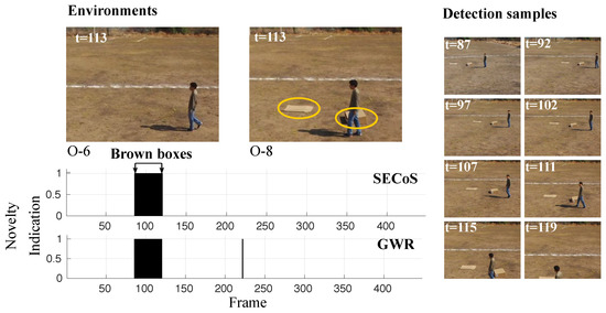 Visual results in novelty detection on dataset D-6 (the brown boxes as the novel objects).