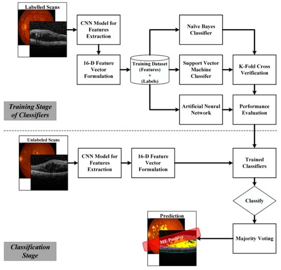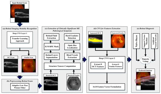 The proposed framework fuses retinal fundus and OCT imagery for the automated recognition and classification of ME and healthy subjects. The block diagram of the proposed framework is shown in Figure 3 where it can be observed that the proposed framework consisted of five major stages: