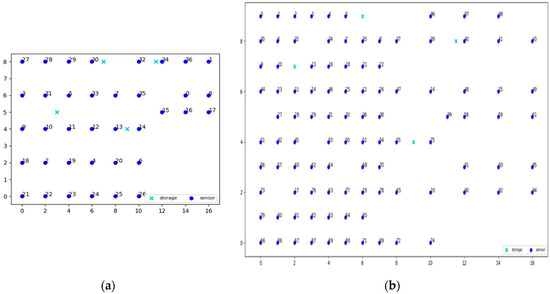 The Future Internet Testing—Internet of Things Laboratory (hereafter referred to as FIT IoT LAB) is an infrastructure that is made available for researchers that wish to experiment over an IoT infrastructure with wireless sensor nodes and various heterogeneous devices [41,42,43]. FIT IoT LAB includes over 2000 presence detection devices that are deployed in six different locations in France. More specifically, it consists of 2728 wireless sensors nodes deployed in Inria Grenoble (928), Inria Lille (640), ICube Strasbourg (400), Inria Rocquencourt (344), Inria Rennes (256) and Institut Mines-Telecom Paris (160) as shown in Figure 4a. It is essentially a scientific testbed that provides full control over wireless devices and access to libraries that help researchers to extract various information about the sensor nodes deployed, such as power consumption, end-to-end delays, and congestion. It facilitates the network deployment as well as the process of collecting and analyzing data.