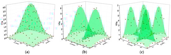 The values of Snm (x, y) obtained by MD simulation for (a) mode11, (b) mode21, and (c) mode22.