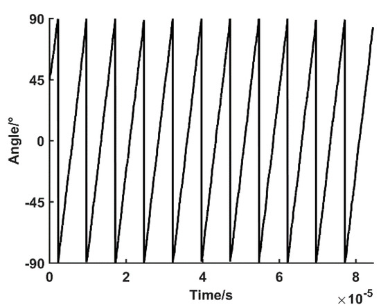 Signal starting phase angle calculation. Because the signal does not always to start from half a period ( or ), it is necessary to calculate the nonperiodic part of the phase angle at the starting point of the signal. The physical line number of the encoder is lines; the phase angle signal half-cycle starting point is ; and the signal starts nonperiodic phase angle