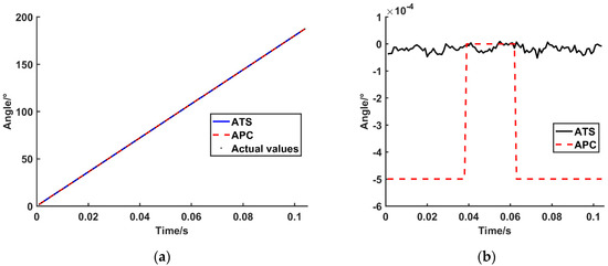 Comparing the experimental results of the ATS method and the analogy pulse counting method, the influence of the two software subdivision methods on the accuracy of the calculation of the encoder rotation angle is analyzed. The results of the encoder angle comparison, presented in Figure 13, as follows.