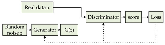 where, represents a sample from the real data, represents a generated sample, and D(G(z)) represents the probability that the generated data is discriminated as a real sample.