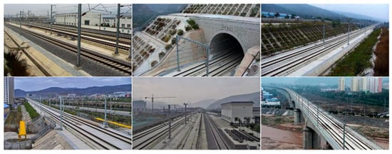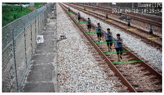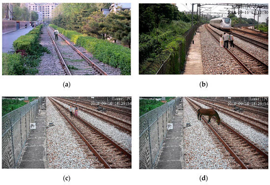 The railway scene dataset was constructed based on surveillance videos along the high-speed rail lines. The dataset contained different scenes, such as station throat areas, tunnel portals, railway main lines, and so on, under different weather conditions. The samples of the railway scene dataset are shown in Figure 14. The size of all of the samples is 1920 × 1080.