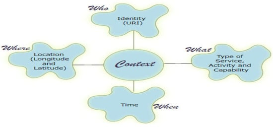 In CATSWoTS, two context managers at the local level and at the central level are designed. Conceptually, both are doing the same work and are deployed at two different levels. The difference between the two context managers is that the central context manager performs the phases of context acquisition and context modeling. In addition to this, the central context manager also maintains the history of services that were consumed in the past. The context managers consider four categories of the conceptual and the primary category of the operational perspective of the context as described in []. Perera et al. identified various categories of context including (i) who; (ii) what; (iii) where; and (iv) when types of context in state of the art []. In CATSWoTS, the mentioned types are also considered, the details of which are shown in Figure 2.