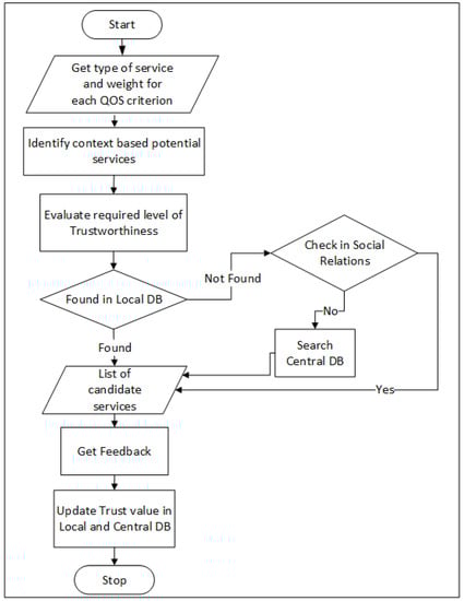 As per SS requirements, services are identified from the shortlisted services fulfilling QoS constraints. The services that are found in the database of an SS means that the SS has already directly experienced the quality of such services and the trust level of such services is already maintained.