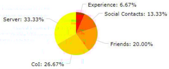 CoI refers to the relationship with those who have the knowledge and contribute to the same area. Friendship manifests intimacy among the contacts, whereas social contacts manifest closeness. For this purpose, three lists are maintained for each user in the user’s central device, which are shown in Equations (1)–(3):