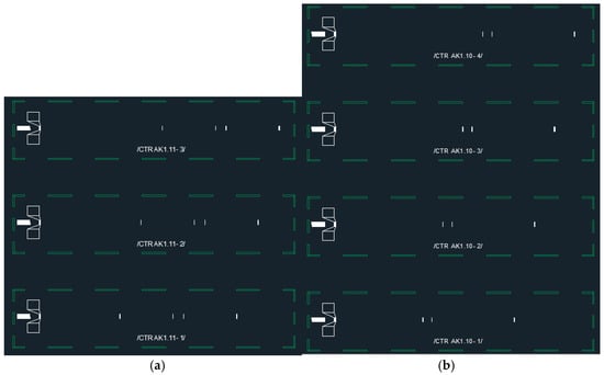 In our measurement setup, four sensors of different designs, B 1–4, were each equipped with a slot antenna and placed within the cone of the same reading antenna. All sensors were read out by the same interrogation sweep. A metallic antenna was used on the sensor side for high temperature robustness, while commercially available antennas (PCB based) were used on the reader side assuming that they could be placed in a cooler area. Figure 8a depicts a schematic of the setup used for the data given in Table 2 and Table 3.