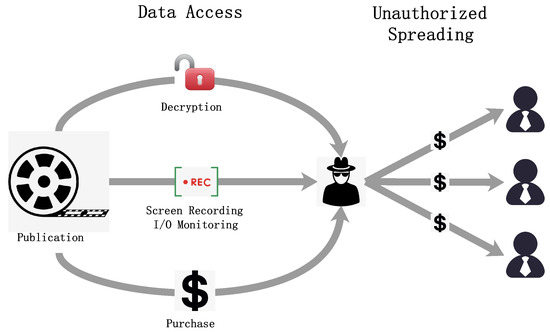 Existing mainstream or novel DRM mechanisms include but are not limited to encapsulated encryption and confusion [2,3,4,5], digital watermarks [6,7,8,9,10,11,12,13,14], blockchain [15,16], trusted computing [17,18], biological features [19], etc. After reviewing the previous schemes, we believe that existing DRM technologies still have great defects. According to the threat model and schemes mentioned above, we address some of the following challenges: