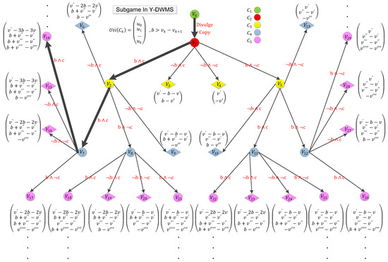 The full game in Y-DWMS. Sharing copies will always trigger the subgame.