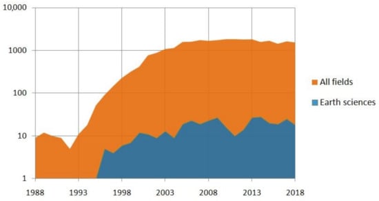 The term “MEMS” in academic literature appears since the mid 1980s. The database Scopus returned more than 29,000 entries with the word “MEMS” in the title in February 2019; among those, only the 0.6% is listed in the field of Earth Sciences (which includes seismology and geophysics), while the most cited discipline is Engineering (>40%). The graph in Figure 1 shows the number of indexed papers in which the term MEMS is contained in the title in the last 30 years. Since the early 1990s to the early 2000s, the topic grew exponentially, while in the last ten years the trend is constant, with ca. 1700 papers on the average, and ca. 20 papers in the field of Earth Sciences.