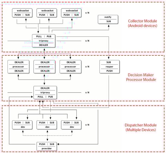 The notifications collected in the Android device are shared with the decision module using the publish/subscribe option that implements a MQTT protocol. The websocket unit provides the communication layer between the client-side and the server-side MQTT combination. The reaper unit receives heartbeat events from device workers and the component for connect the devices is called triproxy because it deals with three endpoints instead of the usual two. They can have more than one instance running simultaneously, and then give a comma-separated list to the provider.